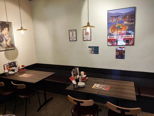 4名がけのテーブルが5席ございます。テーブルは可動式なので小中宴会でもご利用いただけます。